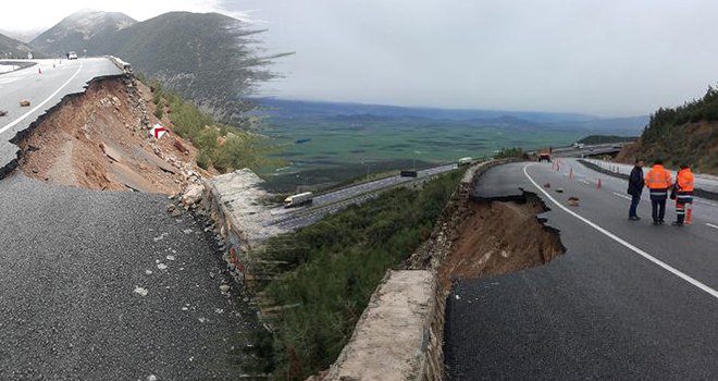 Gaziantep'in Nurdağı ilçesinde, sağanak nedeniyle kara yolunun uçurum bölümünde, çökme meydana geldi.