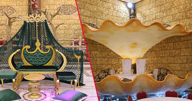 15 yıl Japonya'da müteahhitlik yaptığını vurgulayan ve plazanın iç mimarisinin de kendisine ait olduğunu belirten Albayrak, salonların özelliklerinden şu sözlerle bahsetti; "Lalezar, Payitaht ve Hasbahçe olmak üzere üç salonumuz var. Alt, orta ve lüks kesime hitap ediyor salonlarımız. Özellikle Hasbahçe'nin Gaziantep'te benzeri bir salon yok. Türkiye'de bile içerisinde şelale, şömine olan salon görmedim. Düğün salonu olarak otantik bir ortam sadece bizim salonumuzda var. Ayrıca gelin ile damadın oturduğu yerde gerçek inciden esinlenilmiş ve köşke benzetilmiş bir inci var. İnsanlar gördükleri zaman vazgeçemiyorlar. Üst salonumuz 1300, orta salon 1000 ve alt salonumuz ise 800 kişi kapasitesine sahip. Klimalı ferah bir ortam. Gelen çevresindeki insanlara da tavsiye ediyor."
