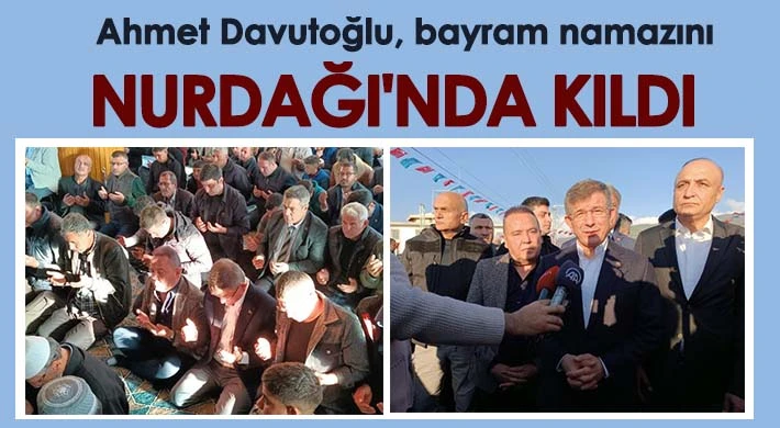 Gelecek Partisi Genel Başkanı Ahmet Davutoğlu, Ramazan Bayramı'nda, bayram namazını Gaziantep'in Nurdağı ilçesinde kıldı. Namazını depremzedelerle birlikte kılan Davutoğlu, "Bayramımızı deprem bölgesinde geçirmeye karar verdik" dedi.