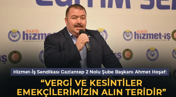 HİZMET-İŞ Sendikası Gaziantep 2 Nolu Şube Başkanı Ahmet Hoşaf, çalışanların vergi yükünü azaltılması gerektiğini ifade etti.