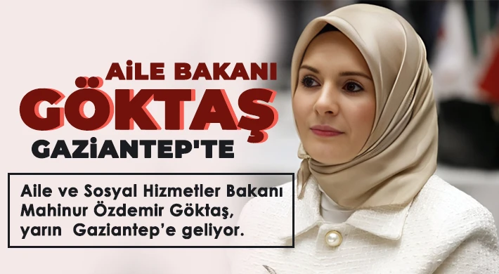 Aile ve Sosyal Hizmetler Bakanı Mahinur Özdemir Göktaş, yarın Gaziantep’e geliyor.