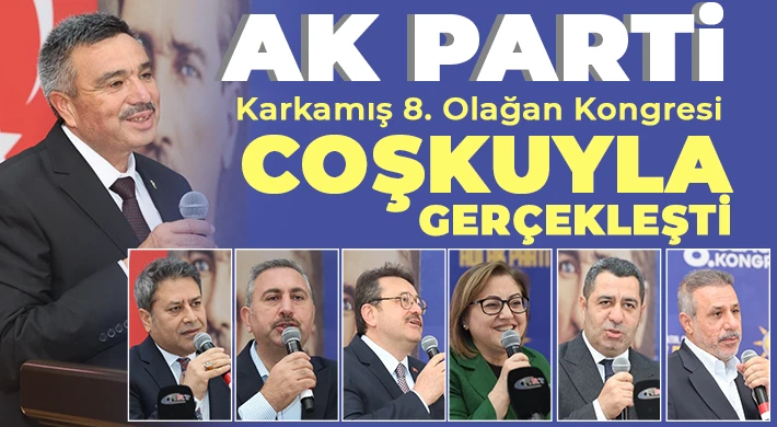AK Parti’nin Gaziantep’teki 8. Olağan Kongre süreci Karkamış ilçesinde gerçekleştirilen coşkulu bir kongre ile devam etti. Kongreye, AK Parti Grup Başkan Vekili Abdulhamit Gül, Gaziantep Milletvekili Ali Şahin, Gaziantep İl Başkanı Fatih Muhaddis Fedaioğlu, Gaziantep Büyükşehir Belediye Başkanı Fatma Şahin ve birçok belediye başkanı ile teşkilat mensupları katıldı.