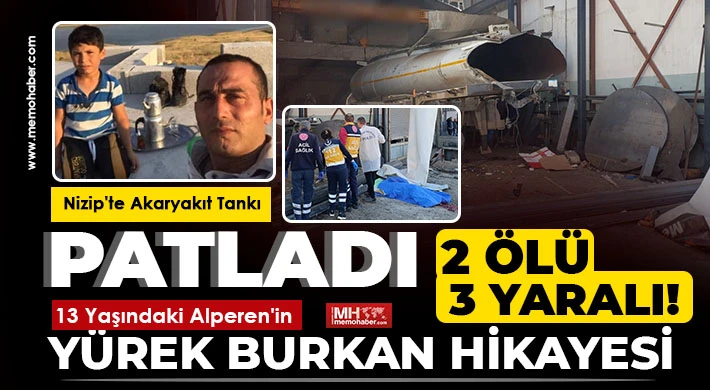 Gaziantep’in Nizip ilçesinde sanayi sitesinde meydana gelen akaryakıt tankı patlaması, büyük bir faciaya yol açtı. Patlamada 13 yaşındaki Alperen Kılıçparlar ve Mehmet Horoz hayatını kaybederken, 3 kişi yaralandı.