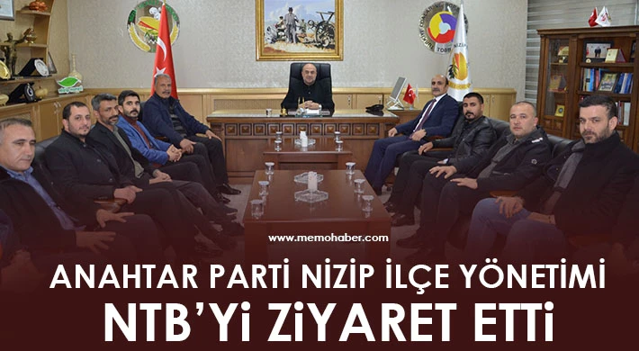 Anahtar Parti Nizip İlçe Başkanı İbrahim Halil Aykut ve beraberindeki ilçe yönetimi, Nizip Ticaret Borsası’nı (NTB) ziyaret etti. Ziyarette, NTB Yönetim Kurulu Başkanı İbrahim Sarı, NTB Meclis Başkanı Ahmet Polat, NTB Yönetim Kurulu ve Meclis Üyeleri de hazır bulundu.
