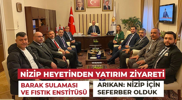Gaziantep Büyükşehir Meclis Üyesi Erim Arıkan, Nizip Meclis Üyesi Mehmet Çiçek, AK Parti Nizip İlçe Başkan Yardımcısı Murat Benzer ve Nizip Ziraat Odası Meclis Başkanı Mehmet Kılıçparlar Ankara'ya giderek mecliste AK Parti Grup Başkanvekili ve Gaziantep Milletvekili Abdülhamit Gül ile Ali Şahin, Eyüp Özkeçeci ve diğer milletvekillerini ziyaret etti.