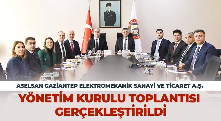 Gaziantep Sanayi Odası ile ASELSAN iş birliğinde Gaziantep’te kurulumu devam eden ASELSAN Gaziantep Elektromekanik Sanayi ve Ticaret A.Ş’nin Yönetim Kurulu Toplantısı gerçekleştirildi. Toplantıda, kurulum süreci, teknik altyapı çalışmaları ve gelecek dönem planlamaları değerlendirildi.