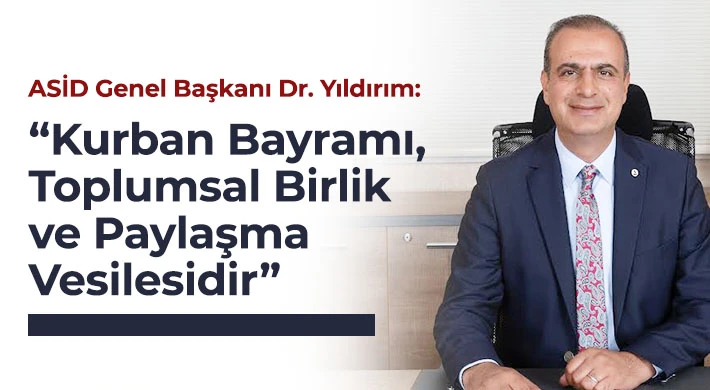 Merkezi Gaziantep’te bulunan Anadolu Sağlık İşletmeleri Derneği (ASİD) Genel Başkanı Dr. Yusuf Ziya Yıldırım, Kurban Bayramı dolayısıyla mesaj yayımladı.