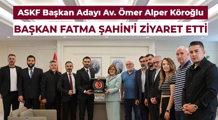 Gaziantep Amatör Spor Kulüpleri Federasyonu (ASKF) Başkan Adayı Av. Ömer Alper Köroğlu, beraberindeki spor camiasının önde gelen isimleriyle birlikte Gaziantep Büyükşehir Belediye Başkanı Sayın Fatma Şahin’i makamında ziyaret etti.