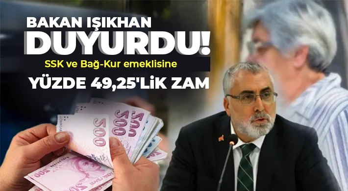 Çalışma ve Sosyal Güvenlik Bakanı Vedat Işıkhan, SSK ve Bağ-Kur emeklilerinin maaş artışını yüzde 49,25'e yükseltildiğini duyurdu.