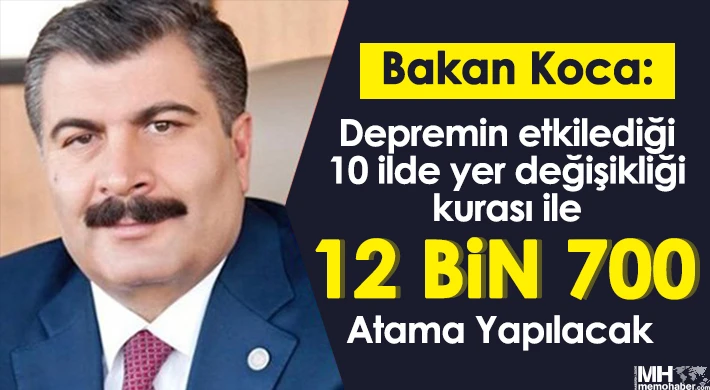 Sağlık Bakanı Fahrettin Koca, depremin etkilediği 10 ilde isteğe bağlı yer değişikliği kurası ile 12 bin 700 atama yapılacağını açıkladı.