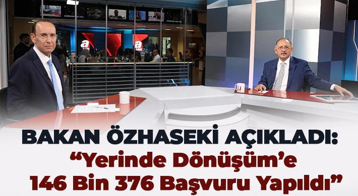 Çevre, Şehircilik ve İklim Değişikliği Bakanı Mehmet Özhaseki, deprem bölgesini hızla ayağa kaldırmak için başlattıkları ‘Yerinde Dönüşüm’ projesine başvuruların 146 bin 376’e ulaştığını açıkladı. Özhaseki, “Bunların 125 bini konut, 21 bini de işyeri yapmak için müracaat etti.” dedi.Çevre, Şehircilik ve İklim Değişikliği Bakanı Mehmet Özhaseki, A Haber’de katıldığı programda deprem bölgesinde yürütülen çalışmalar ve İstanbul’un depreme hazırlığı konusunda açıklamalarda bulundu.