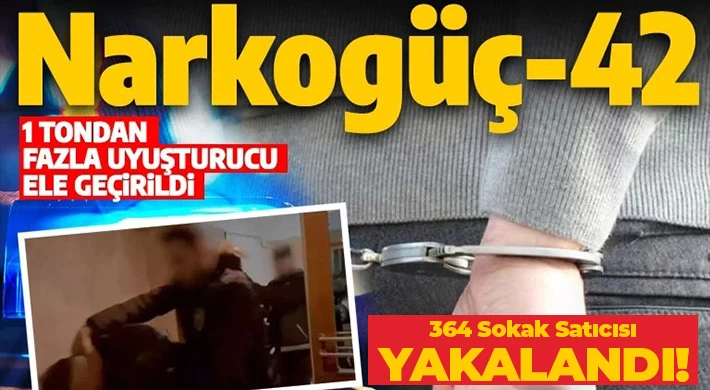Emniyet Genel Müdürlüğü, Jandarma Genel Komutanlığı ve Narkotik Suçlarla Mücadele Başkanlığı koordinesinde, İl Emniyet Müdürlükleri Narkotik Suçlarla Mücadele Şube Müdürlükleri ve İl Jandarma Komutanlıklarınca; 332 ekip, 1375 personel 1hava aracı ve 19 narkotik dedektör köpeğinin katılımı ile Malatya, Ankara, Gaziantep, Şanlıurfa, Sakarya, Kars, Adana, İzmir, Batman, Kırklareli, Diyarbakır, Mersin, Antalya, Bursa, İstanbul, Edirne, Karaman, Tokat, Elazığ, Amasya, Osmaniye, Kocaeli, Konya, Samsun, Aydın, Tekirdağ, Çorum, Kırşehir, Balıkesir, Isparta, Hatay, Kayseri, Eskişehir, Kütahya, Sivas, Siirt, Muğla, Aksaray, Kahramanmaraş, Çanakkale, Manisa, Adıyaman, Kastamonu, Erzurum, Düzce ve Yalova olmak üzere 46 ilde gerçekleştirilen "NARKOGÜÇ-42” Operasyonlarında bazı İllerde ele geçirilen uyuşturucu miktarları ve yakalanan zehir tacirleri ve sokak satıcıları şöyle:
