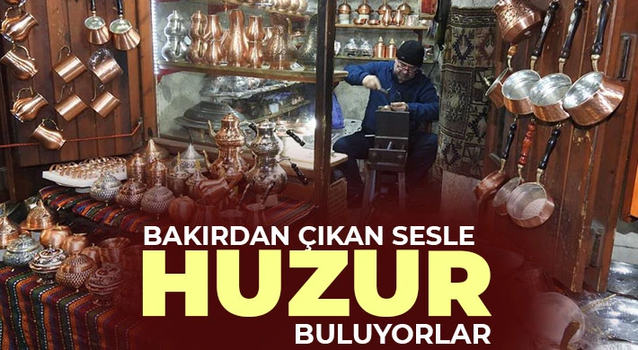 Bakırcılar Çarşısı’nda bulunan dükkânlarında güne bir koronun ahenkli ritmini andıran ve insana huzur veren çekiç sesleriyle başlayan ustalar, gün boyu devam eden bu seste huzur buluyor.