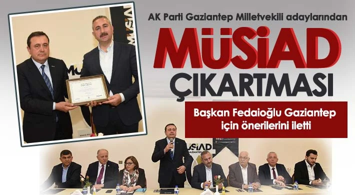 MÜSİAD Gaziantep Başkanı Fatih Fedaioğlu, milletvekillerine ve beraberinde gelen yöneticilere MÜSİAD’a göstermiş oldukları ilgiden dolayı teşekkür ederken, kendilerine seçim çalışmalarında başarılar diledi. Fedaioğlu ziyaret sırasında Üyeleriyle birlikte Gaziantep'in sorunlarını belirten bir dosya’yı gelen heyete verdiklerini ve güncel konuları konuştuklarını ifade etti.