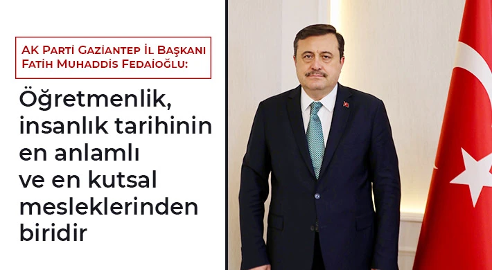 AK Parti Gaziantep İl Başkanı Fatih Muhaddis Fedaioğlu, 24 Kasım Öğretmenler Günü dolayısıyla mesaj yayımladı.