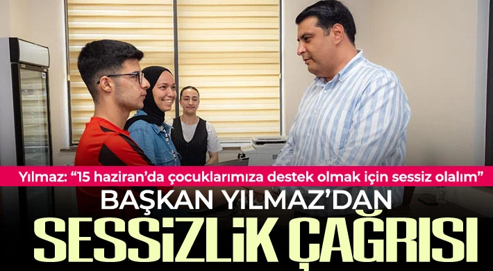 Yılmaz, "15 Haziran Pazar günü 1 yılı aşkın süredir hayalleri için çalışan öğrencilerimizin heyecanla beklediği gün. Geleceğimizin teminatı olan çocuklarımızın için çok önemli bir gün olacak. Bizler de bu yolcuklarında onlara yardımcı olmak zorundayız. Öğrencilerimizin en şok ihtiyaç duyduğu şey ise hiç şüphesi gürültüsüz bir ortam. Çocuklarımızın başarısına destek olmak için şehrimizi bir günlüğüne sessizliğe bürüyelim. Korna çalmayalım, gürültülü müzikten kaçınalım, trafikte sabırlı olalım" şeklinde konuştu.