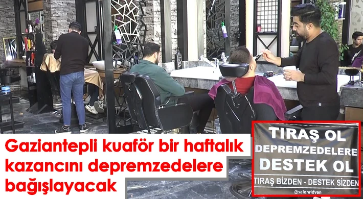 Gaziantep’te erkek kuaförü Rıdvan Turgut, depremzede vatandaşlara destek olmak amacıyla 1-7 Mart tarihleri arasında elde ettiği kazancın tümünü depremzedelere bağışlayacak.