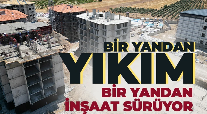 Gaziantep’in İslahiye ilçesinde bir yandan ağır hasarlı binaların yıkımı sürerken, diğer yandan da TOKİ’nin yaptığı konutların inşaatı sürüyor.