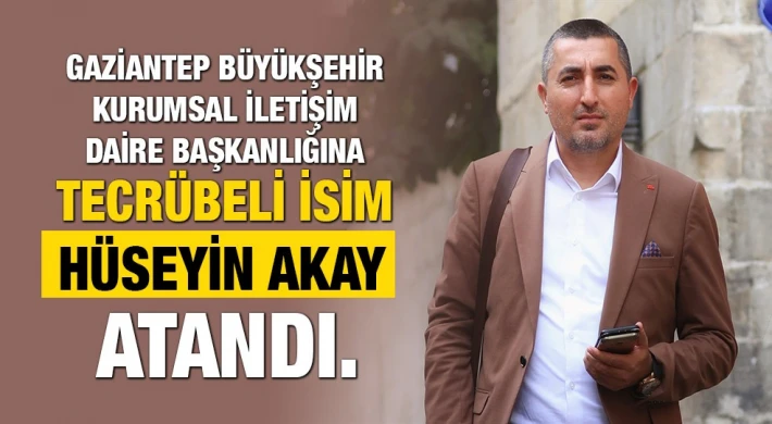 çekirdekten yetişme Gaziantep Büyükşehir Belediyesi Kurumsal İletişim Daire Başkanlığına Basın Müdürü Hüseyin Akay atandı. Akay, 2004 yılından bu yana Büyükşehir Belediyesi’nde Basın ve Yayın Müdürü olarak görev yapıyordu.