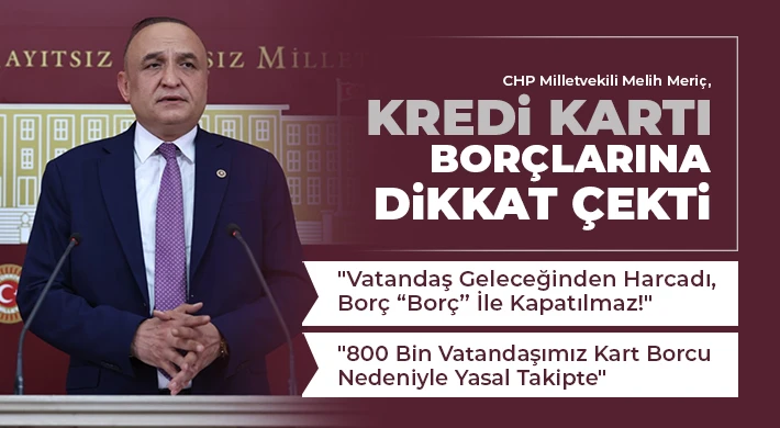 Cumhuriyet Halk Partisi (CHP) Gaziantep Milletvekili Melih Meriç, gelir dağılımındaki adaletsizlik nedeniyle vatandaşların temel ihtiyaçlarını dahi kredi kartıyla karşılamak zorunda kaldığına dikkat çekerek, "Yaklaşık 800 bin vatandaşımız kredi kartı borcu nedeniyle yasal takip altında. BDDK'nın müjde gibi duyurduğu yapılandırma halkı tekrar faiz ödemeye mecbur kılıyor," dedi.