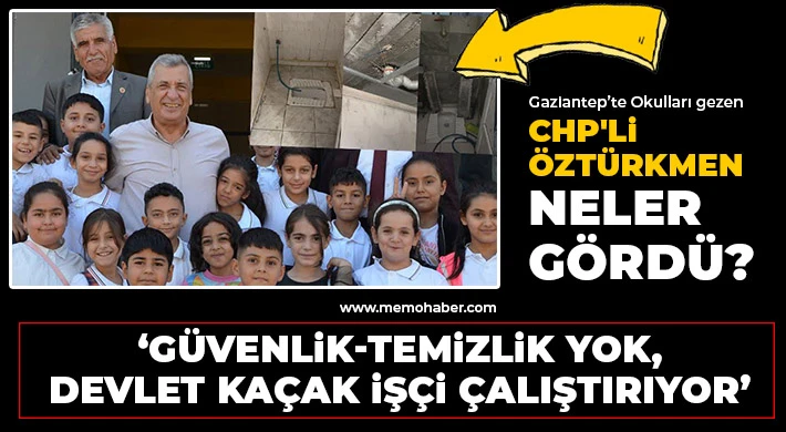 CHP Gaziantep Milletvekili Hasan Öztürkmen, kentte çok sayıda okulu gezdi. Okul tuvaletlerinden ibretlik görüntüler paylaşan Öztürkmen, okullarda güvenlik görevlilerinin olmadığını söyledi. Bazı okullara haftanın sadece 3 günü temizlikçi geldiğini onların da asgari ücretin altında ve sigortasız çalıştırıldığını söyledi. Zaten kapasitesinin çok üstünde öğrencisi bulunan okullarda yüzlerce Suriyeli çocuğun bulunduğunu, devletin bu okullara Arapça tercüman tahsis ettiğini belirtti.