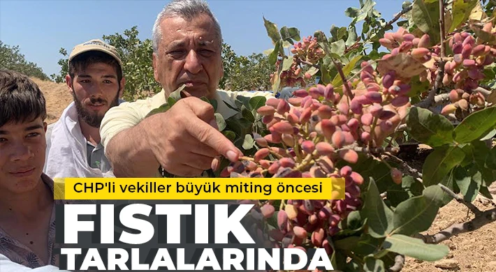 CHP'li Hasan Öztürkmen, bir fıstık tarlasında incelemelerde bulundu ve çiftçileri dinledi.
