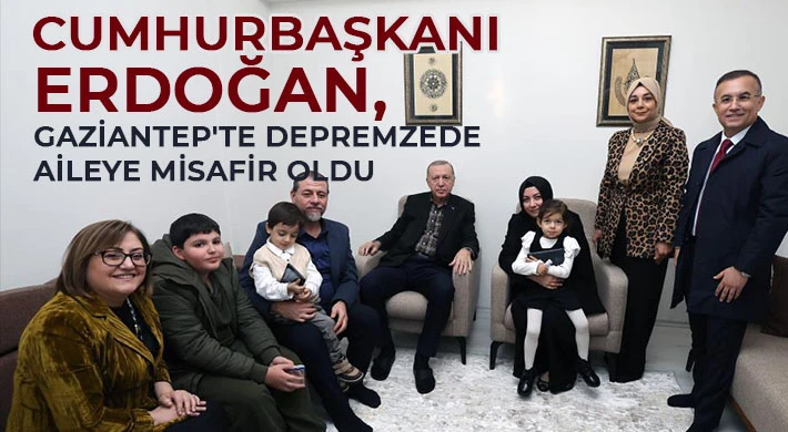 Gaziantep'te 5 bin 113 konut anahtar ve tapu teslim törenine katılan Cumhurbaşkanı Recep Tayyip Erdoğan, tören sonrası depremzede ailenin evine misafir oldu.