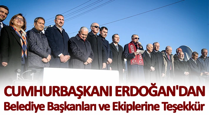 Gaziantep-Kilis afet konutları temel atma töreni için Nurdağı’nda açıklamalarda bulunan Cumhurbaşkanı Recep Tayyip Erdoğan, deprem bölgelerinde çalışan belediye başkanlarına ve ekiplerine teşekkür etti.