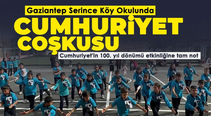 Gaziantep'te Cumhuriyet'in 100. yıl dönümü kutlamaları kapsamında onlarca öğrenci Serince köy ilkokulunda "100. Yıl" koreografisi oluşturdu, "Cumhuriyet Yürüyüşü" düzenledi.