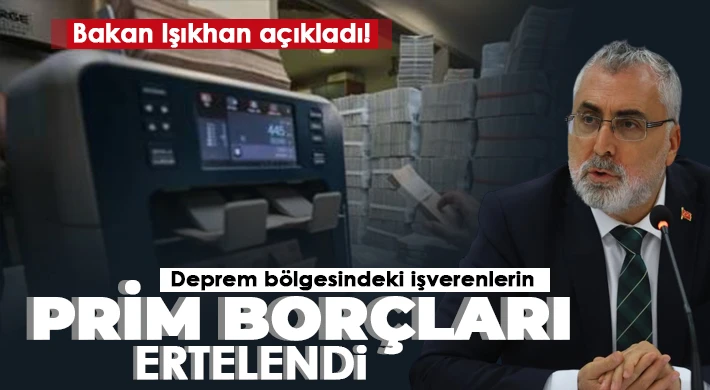 Bakan Işıkhan, "Adıyaman, Hatay, Kahramanmaraş ve Malatya illeri ile Gaziantep’in İslahiye ve Nurdağı ilçelerindeki işverenlerimizin mevcut prim borçları, mücbir sebep düzenlemesi kapsamında 29 Aralık 2023 tarihine kadar ertelenmiştir" dedi.