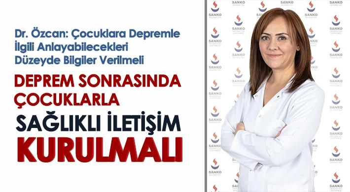 SANKO Üniversitesi Hastanesi Çocuk ve Ergen Ruh Sağlığı ve Hastalıkları Bölümünden Uzm. Dr. Burcu Gökalp Özcan, depremde yetişkinler gibi çocukların da çok zor günlerden geçtiğini belirterek, çocuklara doğal afetler ve depremle ilgili yaşlarına uygun, anlayabilecekleri düzeyde bilgiler verilmesi gerektiğini söyledi.