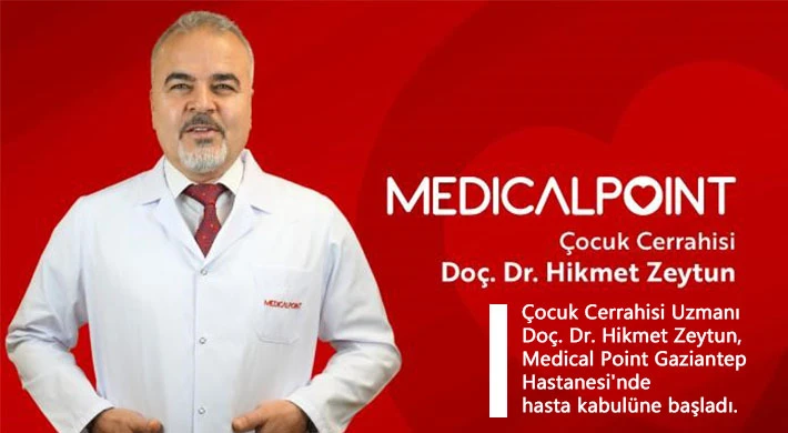 Çocuk Cerrahisi Uzmanı Doç. Dr. Hikmet Zeytun, Medical Point Gaziantep Hastanesi'nde hasta kabulüne başladı.