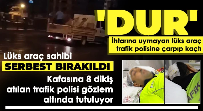 Gaziantep'te, gece saatlerinde yaşanan bir kazanın ardından yol güvenliğini sağlayan trafik polisine 'dur' ihtarına uymayan lüks araç çarpıp kaçtı. Olay sonrası hastaneye kaldırılan ve kafasına 8 dikiş atılan trafik polisi gözlem altında tutulurken, daha sonrasında yakalanan otomobilin sürücüsü işlemlerinin ardından serbest bırakıldı.