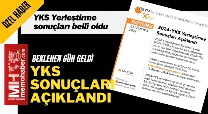 YKS Yükseköğretim Kurumları Sınavı yerleştirme sonuçları açıklandı2024-Yükseköğretim Kurumları Sınavı (YKS) yerleştirme sonuçları, ÖSYM'nin "https://sonuc.osym.gov.tr" adresinden açıklandı
