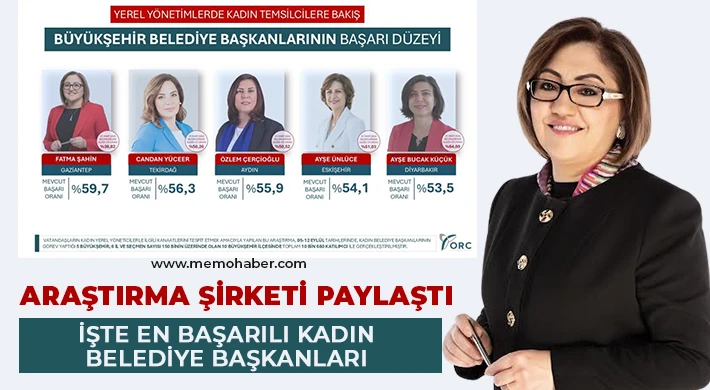 Araştırma sonuçlarına göre Gaziantep Büyükşehir Belediye Başkanı Fatma Şahin, yüzde 59,7'lik beğenilme oranıyla Türkiye'deki en başarılı kadın büyükşehir belediye başkanı oldu.