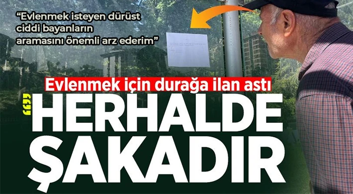 Eskişehir’in Tepebaşı ilçesi Prof. Dr. Orhan Oğuz Alt Geçidi’nin üst kısmında kalan otobüs durağına asılan bir ilan dikkat çekti. Kâğıtta, "Lise mezunu, lise terk ve ortaokul mezunu olup evlenmek isteyen dürüst ciddi bayanların aramasını önemli arz ederim" şeklindeki ilanda iki cep telefonu numarasının yer aldığı görüldü. Durakta otobüs bekleyen bazı vatandaşlar yazıyı şaşkınlıkla okudu. İlanın gerçekten eş bulmak için mi yoksa şaka amaçlı mı asıldığı bilinmezken ilandaki numaralara cevap verilmediği öğrenildi.