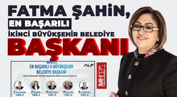 Açıklanan sonuçlara göre Gaziantep Büyükşehir Belediye Başkanı Fatma Şahin, Türkiye'deki en başarılı ikinci büyükşehir belediye başkanı olarak dikkat çekti.