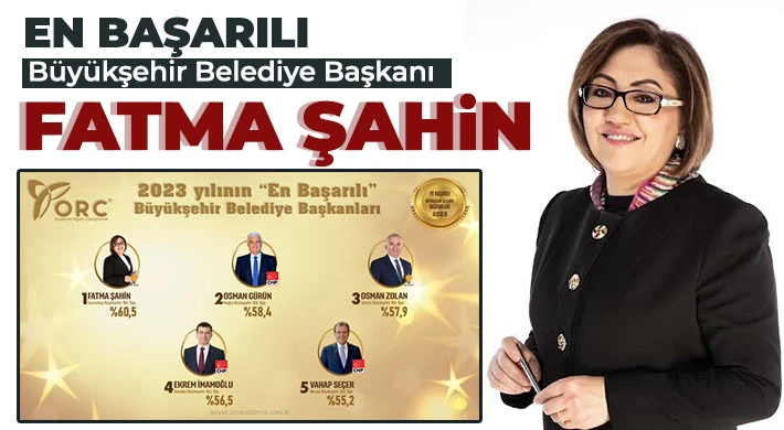 2023 Yılının en başarılı Büyükşehir Belediye Başkanları belli oldu. ORC Araştırma Şirketi tarafından yapılan araştırma sonuçlarına göre 2023 Yılının En Başarılı Büyükşehir Belediye Başkanı Fatma Şahin oldu.