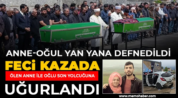 Gaziantep'in İslahiye ilçesinde tır ile çarpışan otomobilde hayatını kaybeden anne ile oğlu, kılınan cenaze namazının ardından son yolcuğuna uğurlandı.