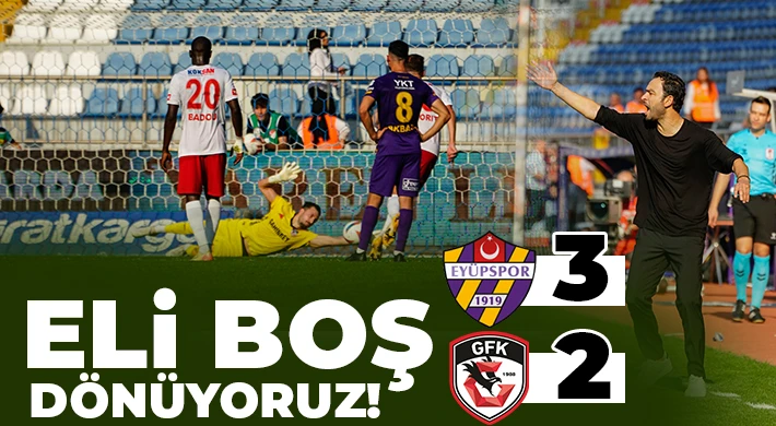 Gaziantep Futbol Kulübü deplasmanda oynadığı Eyüpspor karşılaşmasını 3-2 kaybederek galibiyet hasretine devam ettirdi.Gaziantep Futbol Kulübü, deplasmanda Eyüpspor ile oynadığı karşılaşmadan 3-2 mağlubiyetle ayrılarak hem ligdeki düşüşünü devam ettirdi hem de galibiyet hasretine sürdürdü. Kırmızı-Siyahlı takımın tek gollerine Sorescu ve Emre Taşdemir imza atarken bu mağlubiyet ile birlikte Gaziantep FK’nın galibiyet hasreti 5 maça çıktı.