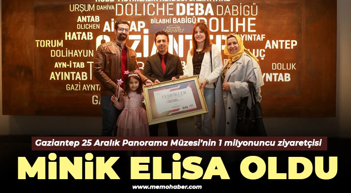 Gaziantep Büyükşehir Belediyesi tarafından Gaziantep’in düşman işgalinden kurtuluşunun 100’üncü yılında yapımı tamamlanarak hizmete açılan 25 Aralık Kahramanlık Panoraması ve Müzesi’nin 1 milyonuncu ziyaretçisi minik Elisa Uslu oldu.