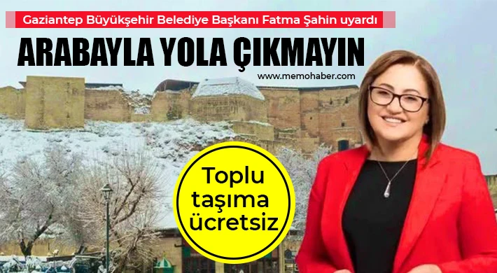 Gaziantep Büyükşehir Belediye Başkanı Fatma Şahin'in yaptığı açıklamada, bugün ve yarın beklenen kar yağışı nedeniyle ulaşımda sıkıntı yaşanmaması için 23 Ocak Cuma günü turuncu otobüsler, tramvay ve GAZİRAY'ın ücretsiz olacağını açıkladı.