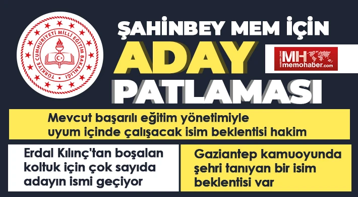 Şahinbey İlçe Milli Eğitim Müdürü Erdal Kılınç'ın Milli Eğitim Bakanlığı Özel Eğitim ve Rehberlik Hizmetleri Daire Başkanı olarak atanmasının ardından yerine atanacak isim merak edilmeye başlandı. Kılınç'tan boşalan koltuk için özellikle Gaziantep dışından pek çok adayın ismi geçerken, kent kamuoyu Şahinbey MEM için şehri bilen bir ismin atanmasını istiyor.