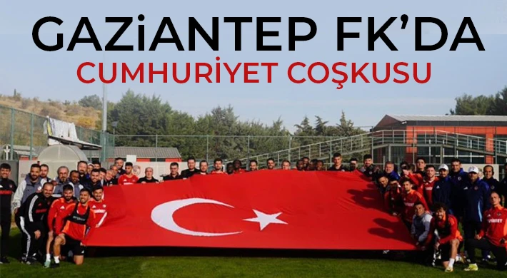 Süper Lig'in 11. haftasında Göztepe ile cuma günü oynayacağı maçın hazırlıklarına devam eden Gaziantep futbol kulübü, antrenman öncesinde dev bir Türk bayrağı açarak 29 Ekim Cumhuriyet Bayramımızın 101. kuruluş yıldönümünü kutladı.