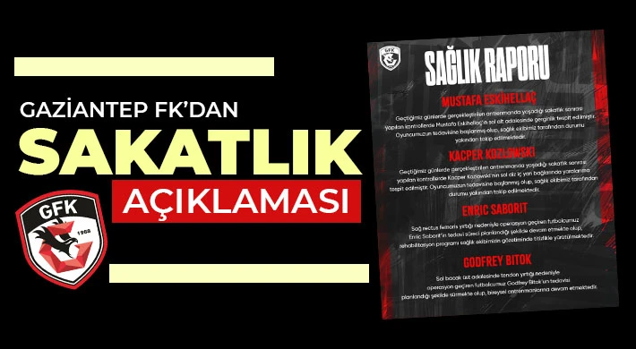 Gaziantep Futbol Kulübü’nde son haftalarda yaşanan sakatlıklarla ilgili açıklama geldi.