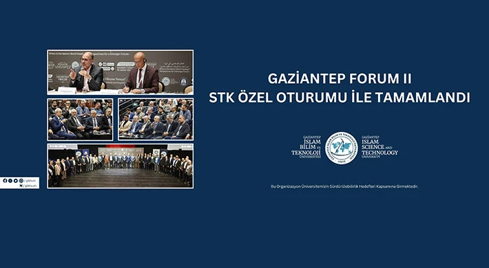 Gaziantep İslam Bilim ve Teknoloji Üniversitesi (GİBTÜ) öncülüğünde, düzenlenen Gaziantep Forum II, “İslâm Dünyası Nereye? – Güçlü Bir Gelecek İçin Perspektif” temasıyla gerçekleştirilen STK Özel Oturumu ile sona erdi. STK Özel Oturumunda İslam dünyasında sivil toplumun dönüştürücü gücü, ortak değerlerin korunması ve uluslararası düzeyde dayanışma ağlarının güçlendirilmesi konuları ele alındı.