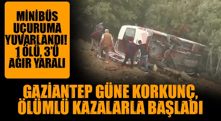 Gaziantep’te otobanda meydana gelen yolcu otobüsü kazasında 7 kişinin hayatını kaybetmesi ve 11 yolcunun da ağır yaralanması haberinin ardından bu kez de aynı bölgede minibüs uçuruma yuvarlandı 1 ölü üç ağır yaralı var.