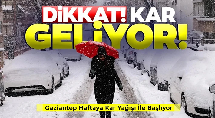 Meteoroloji Genel Müdürlüğü'nün son hava durumu tahminlerine göre, Gaziantep'te 29 Ocak Pazartesi günü kar yağışı etkili olacak. Tahminlere göre, kar yağışının 2 gün boyunca süreceği tahmin ediliyor. Sürücülerin ve yayaların kar yağışına karşı dikkatli olmaları duyuruldu.