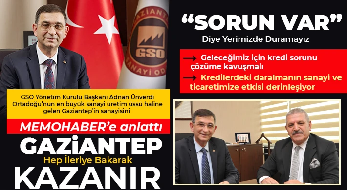 Sadece bölgenin değil, Ortadoğu’nun en büyük sanayi üretim üssü haline gelen Gaziantep’in sanayisini temsil eden Gaziantep Sanayi Odası (GSO) Yönetim Kurulu Başkanı Adnan Ünverdi www.memohaber.com Genel Yayın Yönetmeni Mehmet Taşçı’ya sanayinin güncel durumu ve geleceğini anlattı.