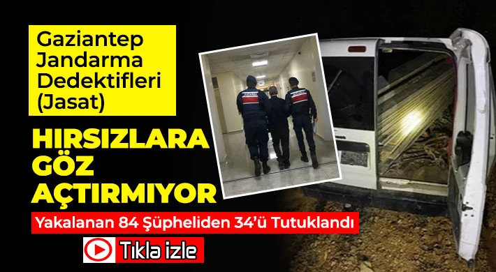 Gaziantep İl Jandarma Komutanlığı JASAT (Jandarma Suç Araştırma Timi) ve OYİ (Olay Yeri İnceleme) destekli özel timleri, meydana gelen faili meçhul hırsızlık olaylarının aydınlatılması amacıyla yaptığı titiz planlama, takip ve çalışmaları sonucunda Gaziantep Cumhuriyet Başsavcılığı koordinesinde gerçekleştirilen operasyonlar neticesinde, 15 "Bağ, Bahçe ve Tarladan Hırsızlık" olayı, 10 “Evden Hırsızlık” olayı, 7 “İnşaattan Hırsızlık” olayı, 6 “İşyerinden Hırsızlık” olayı, 4 “Motosiklet Hırsızlığı” olayı, 3 “Haberleşme ve Enerji Nakil Kablosu Hırsızlığı” olayı, 2 “Açıktan Hırsızlık” olayı, 1 “Kamu Kurum ve Kuruluşlarından Hırsızlık” olayı, 1 “Oto Hırsızlığı” olayı, 1 “Büyükbaş ve Küçükbaş Hayvan Hırsızlığı” olayı, 1 “Bisiklet Hırsızlığı” olayı, 2 “Diğer Hırsızlıklar” olmak üzere toplam (53) faili meçhul olay aydınlatılarak, olaylara karıştığı tespit edilen (84) şüpheli hakkında yasal işlem başlatıldı. Adli makamlara sevk edilen şüphelilerden (34)’ü tutuklanarak cezaevine teslim edilmiş, (50)’si hakkında adli kontrol kararı verilmiştir. İcra edilen operasyonlar neticesinde ele geçirilen malzemeler, hırsızlık mağduru vatandaşlara teslim edildi.